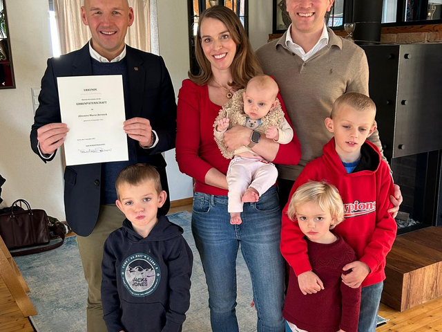 Familie Beranek aus Schönaich hat kürzlich für ihr siebtes Kind eine besondere Anerkennung erhalten: Der Bundespräsident Frank-Walter Steinmeier übernahm die Ehrenpatenschaft für die neugeborene Eléonore. Marc Biadacz, direkt gewählter Bundestagsabgeordneter für den Landkreis Böblingen, überreichte…